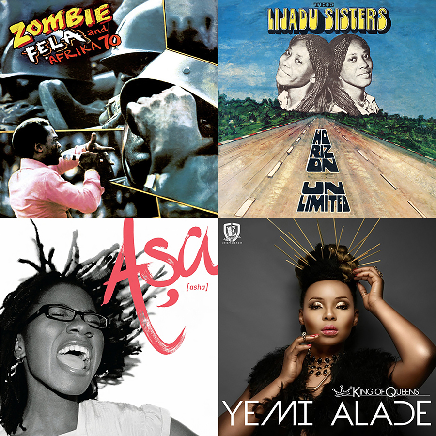 Fela Kuti, Tony Allen, Asa, King Sunny Ade, Kila, Lijadu Sisters, Yemi Alade, Baba Fryo, 9ice, and Seun Kuti.